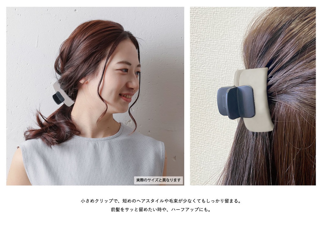 小さめクリップで、短めのヘアスタイルや毛束が少なくてもしっかり留まる。前髪をサッと留めたい時や、ハーフアップにも。