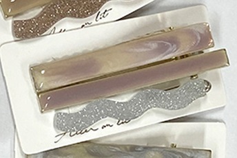 HC210211/HC210212/HC210213 セットヘアクリップ ウェーブ×ラメ BEG PPL GRY