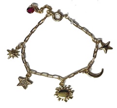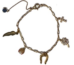 フォーチュンチャーム のついたお守りのようなブレスレット。